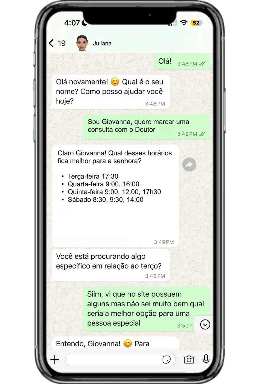 Transforme sua operação com um assistente sob medida, capaz de agendar consultas e qualificar leads 24/7 para elevar o engajamento e suas vendas.